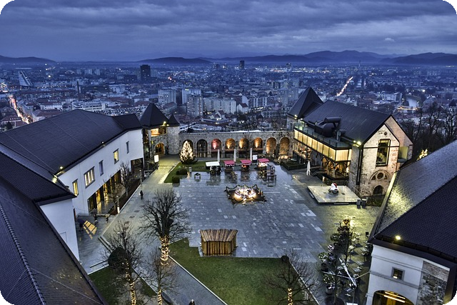 | 조명과 겹벚꽃의 환상적인 조화 |